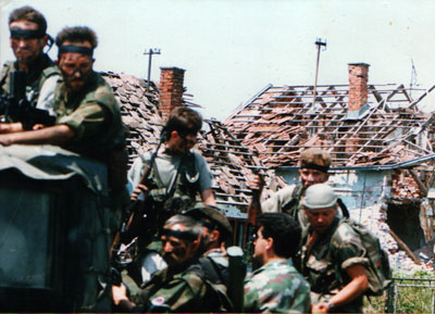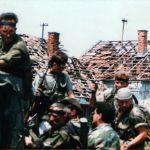 Trči živina kroz dvorište, leluja veš na vetru… Miriše barut. Pucnji rafali. Trzam se i okrećem levo – desno, uplašen. Oko mene ljudi – samo im oči vidim. Gde sam ovo…?“