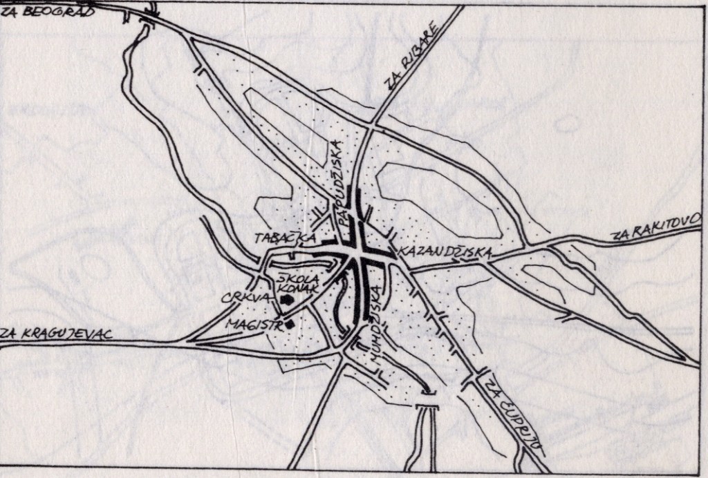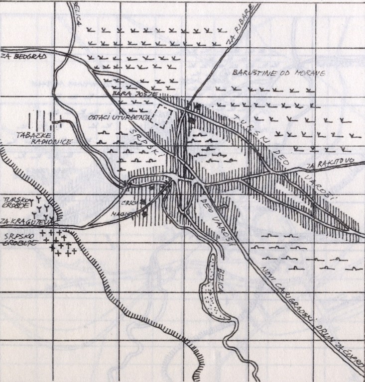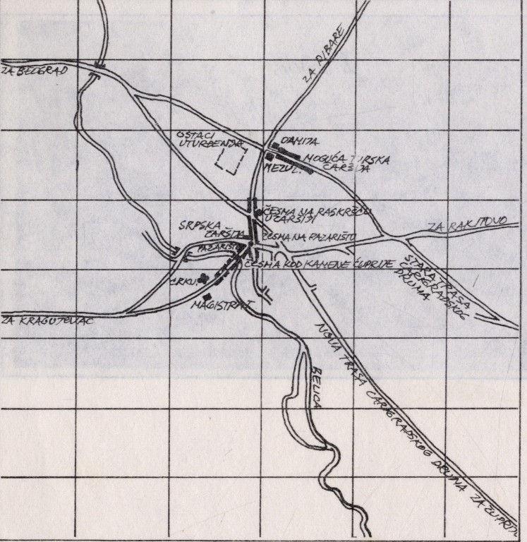 U periodu od 1815-1832. godine, Jagodina je bila bicentrična varoš. Ovaj sistem su činila stara turska i nova srpska čaršija. Raskršće na kome je varoš ležala, nalazila se na levačkom putu koji je išao pravo u kragujevac , prestonicu od 1818.godine.
