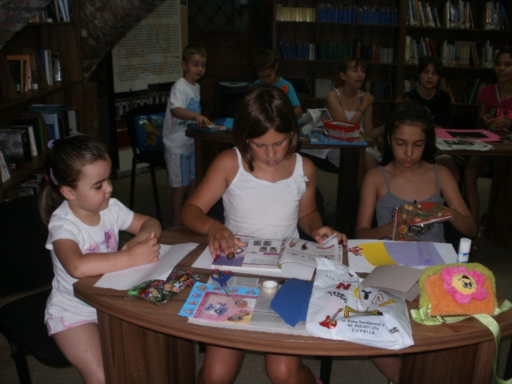 Ciklus letnjih kreativnih radionica na Dečjem odeljenju jagodinske biblioteke već više godina pokazuju da je aktivnost knjiga = zabava sasvim moguća i realna. Sigurno da je najveći uspeh postepeno formiranje tima dece – saradnika biblioteke i realizatora vršnjačke edukacije.