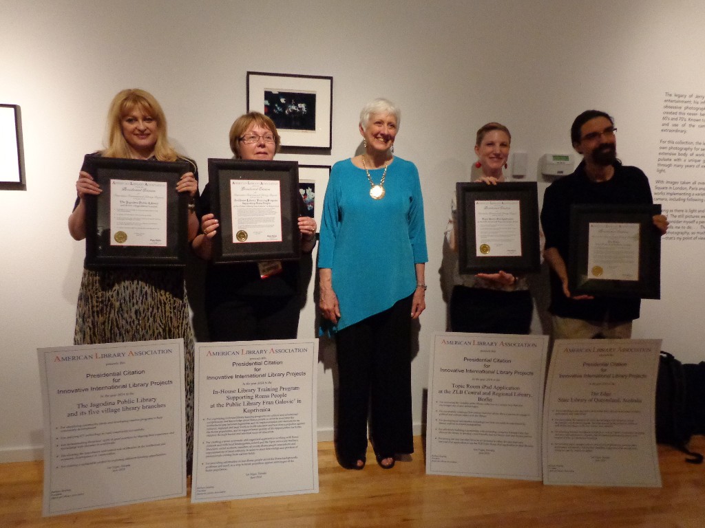 Predsedničku nagradu za inovativne međunarodne projekte Američkog bibliotečkog društva za 2014. godinu su dobile i Državna biblioteka Kvinslenda u Australiji, ZLB biblioteka iz Berlina, kao i Knjižnica i čitaonica „Fran Galović“ iz Koprivnice u Hrvatskoj.