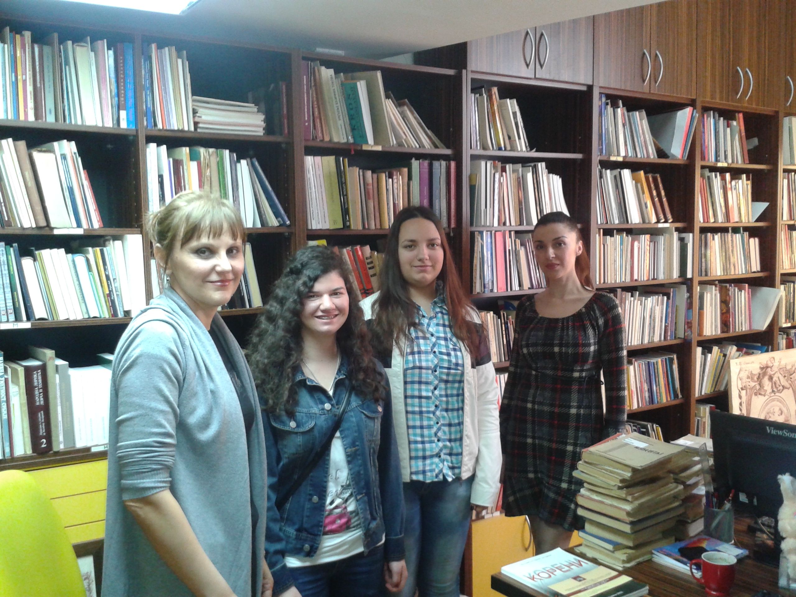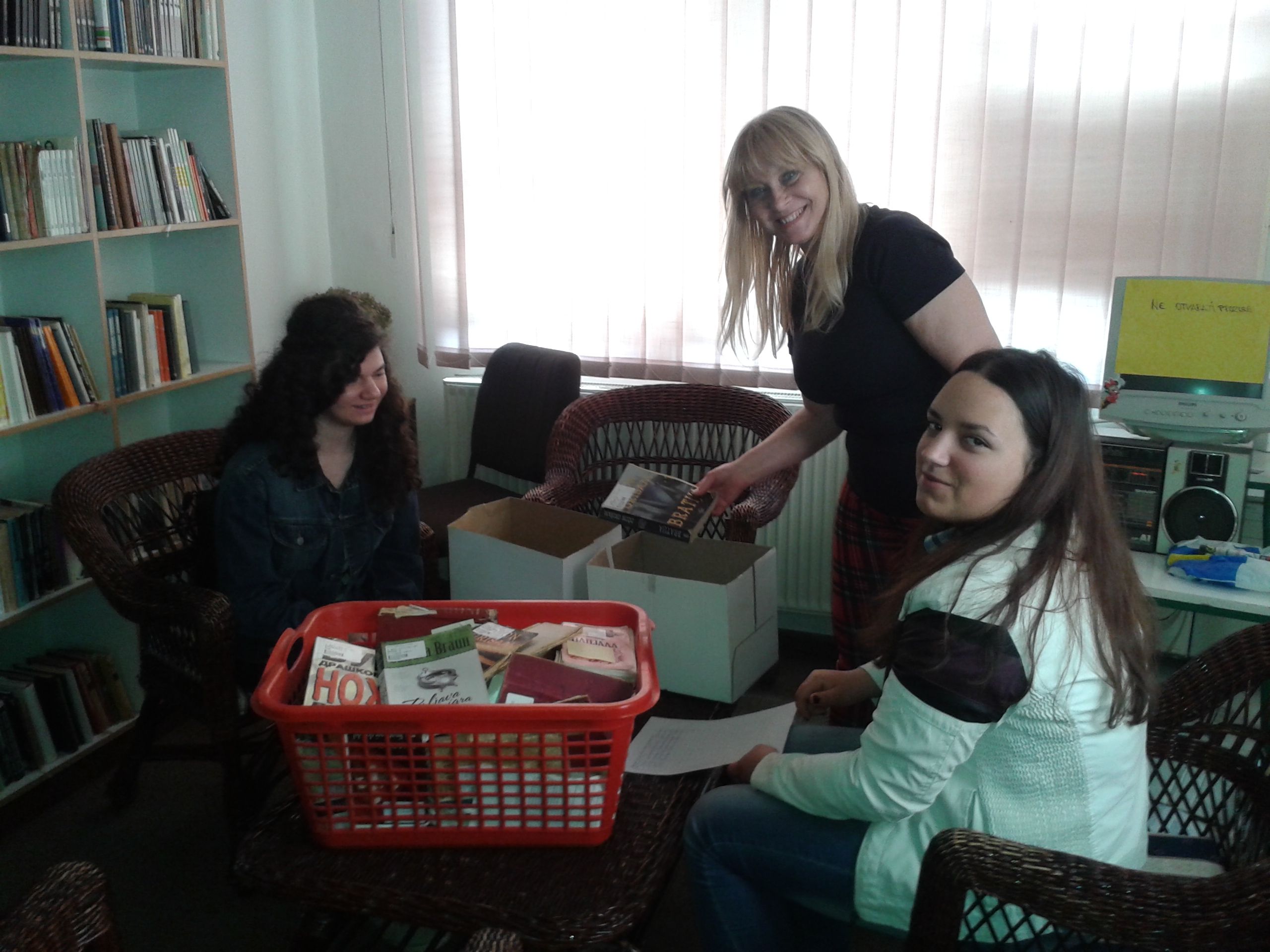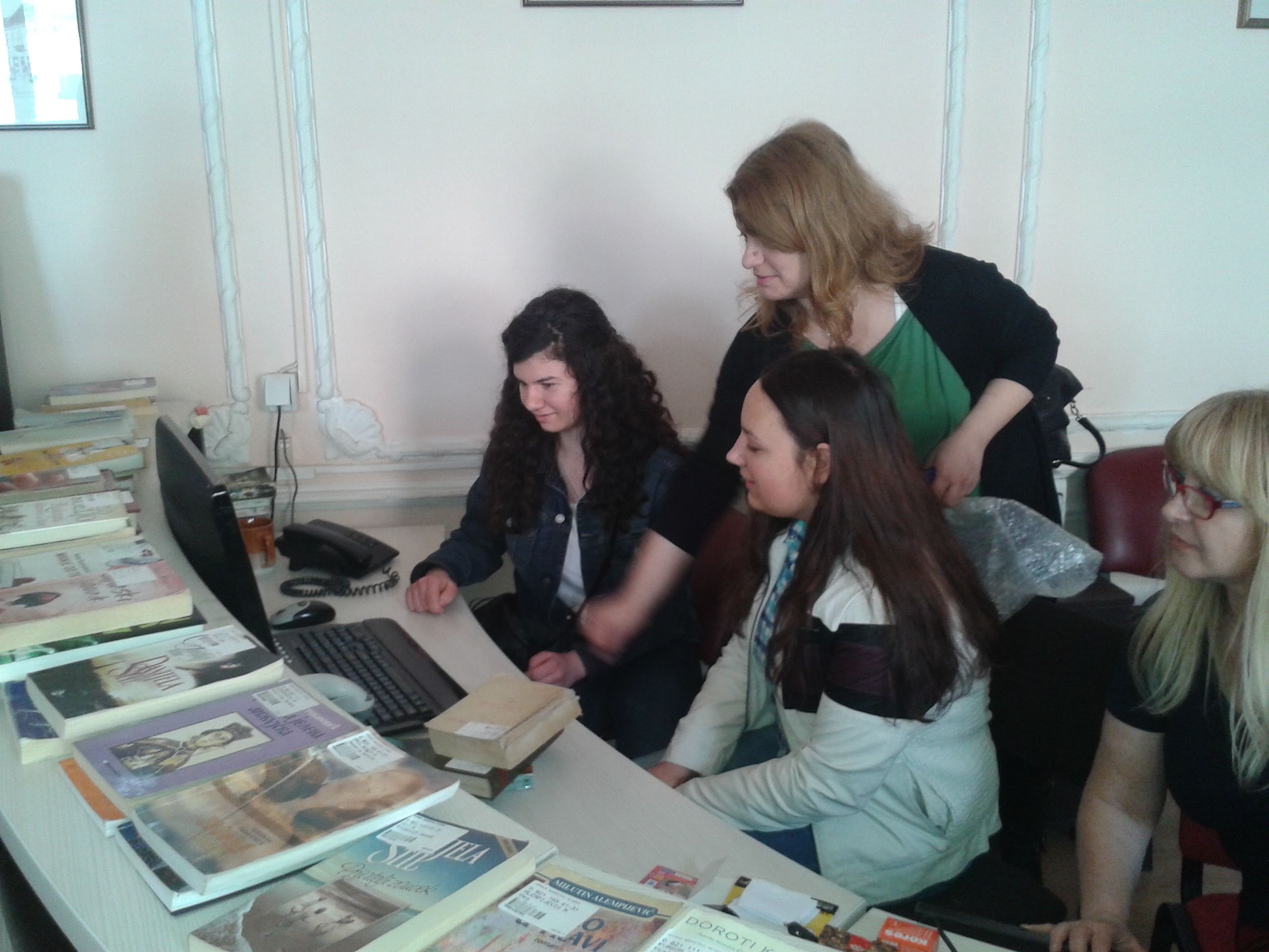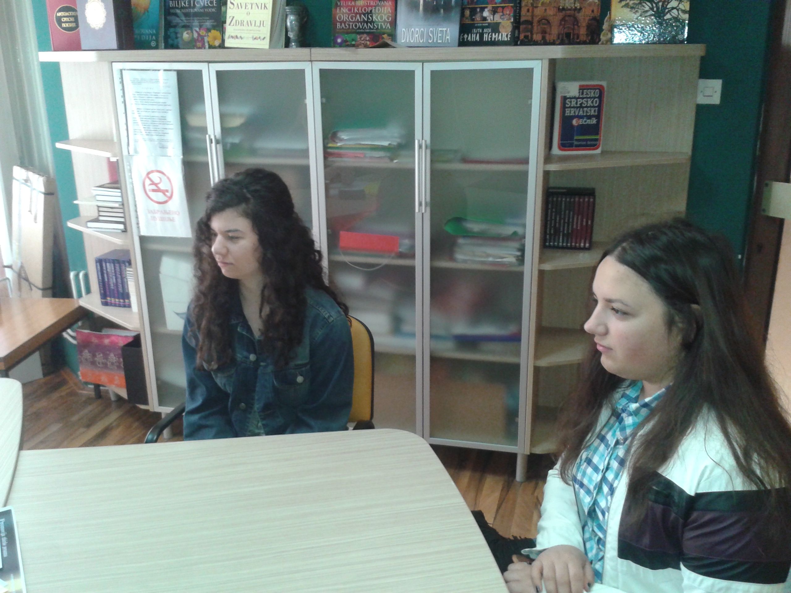 U sredu, 13. aprila učenice drugog razreda Gimnazije „Svetozar Marković“, Jelena Vasić i Milica Milošević svoj dan su posvetile volontiranju u biblioteci. Na početku su se susrele sa direktorkom Vesnom Crnković koja ih je upoznala sa poslom direktora biblioteke, ali i sa mnogobrojnim aktivnostima i uspesima naše ustanove. Pošto su uz stručna objašnjenja zaposlenih obišle sva odeljenja, Jelena i Milica su prionule na posao na Dečjem odeljenju i Odeljenju za odrasle korisnike. Uz pomoć koleginica Jasmine Živanović, Biljane Jovović i Danice Stojković-Vuković one su zaduživale i razduživale korisnike, sređivale fond biblioteke, a najviše truda su uložile u rashodovanje knjiga. Kažu da im se, osim odeljenja na kojima se radi sa korisnicima, naročito dopalo Zavičajno odeljenje. Iako su u biblioteci provele pravi radni dan koji je trajao osam sati, nestrpljive su da ponovo dođu i još jednom osete lepotu bibliotekarskog poziva.