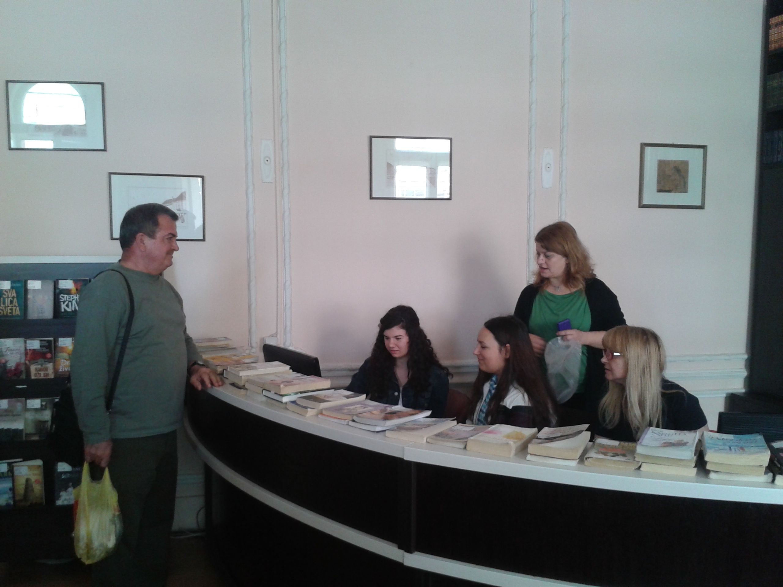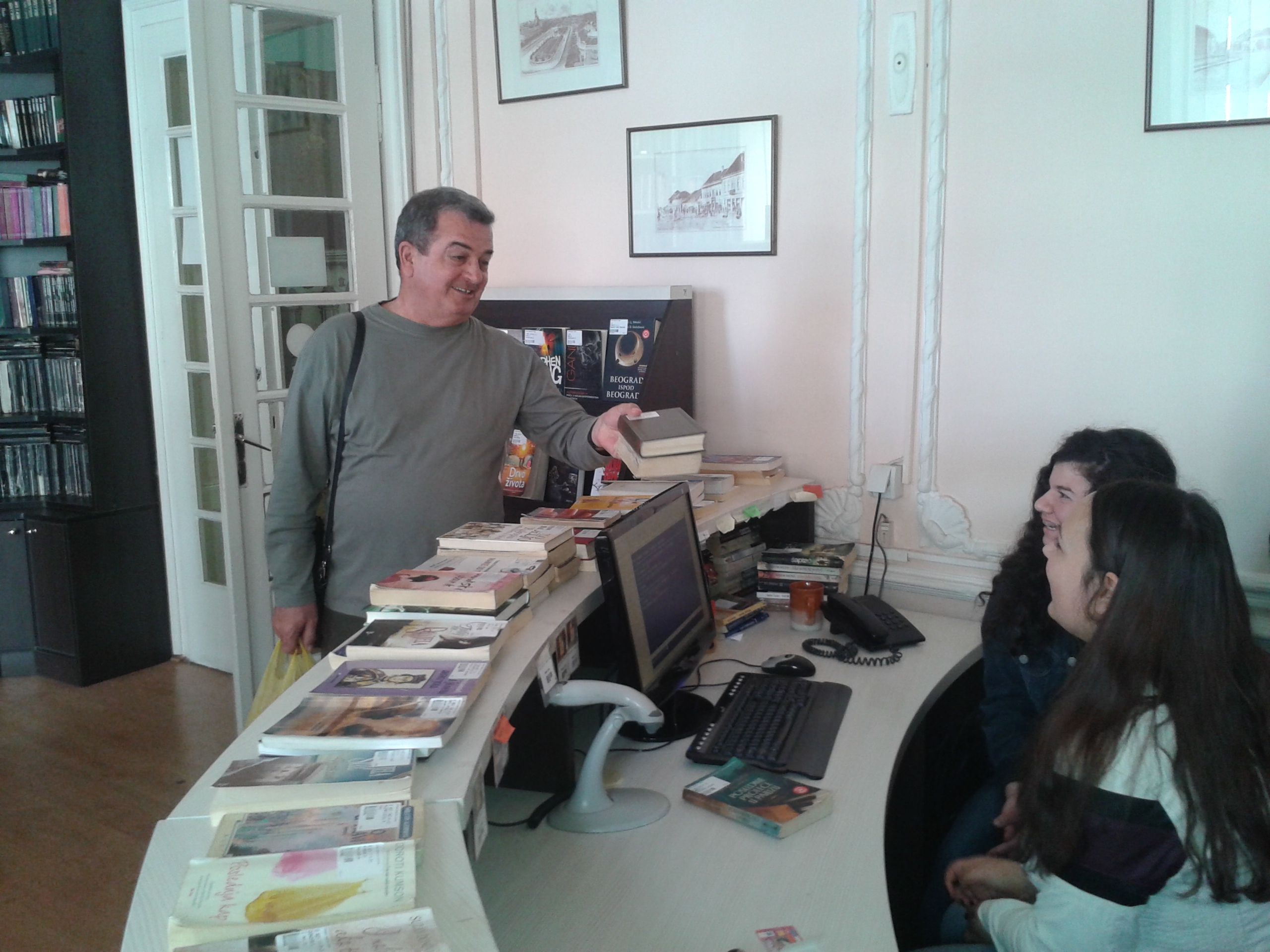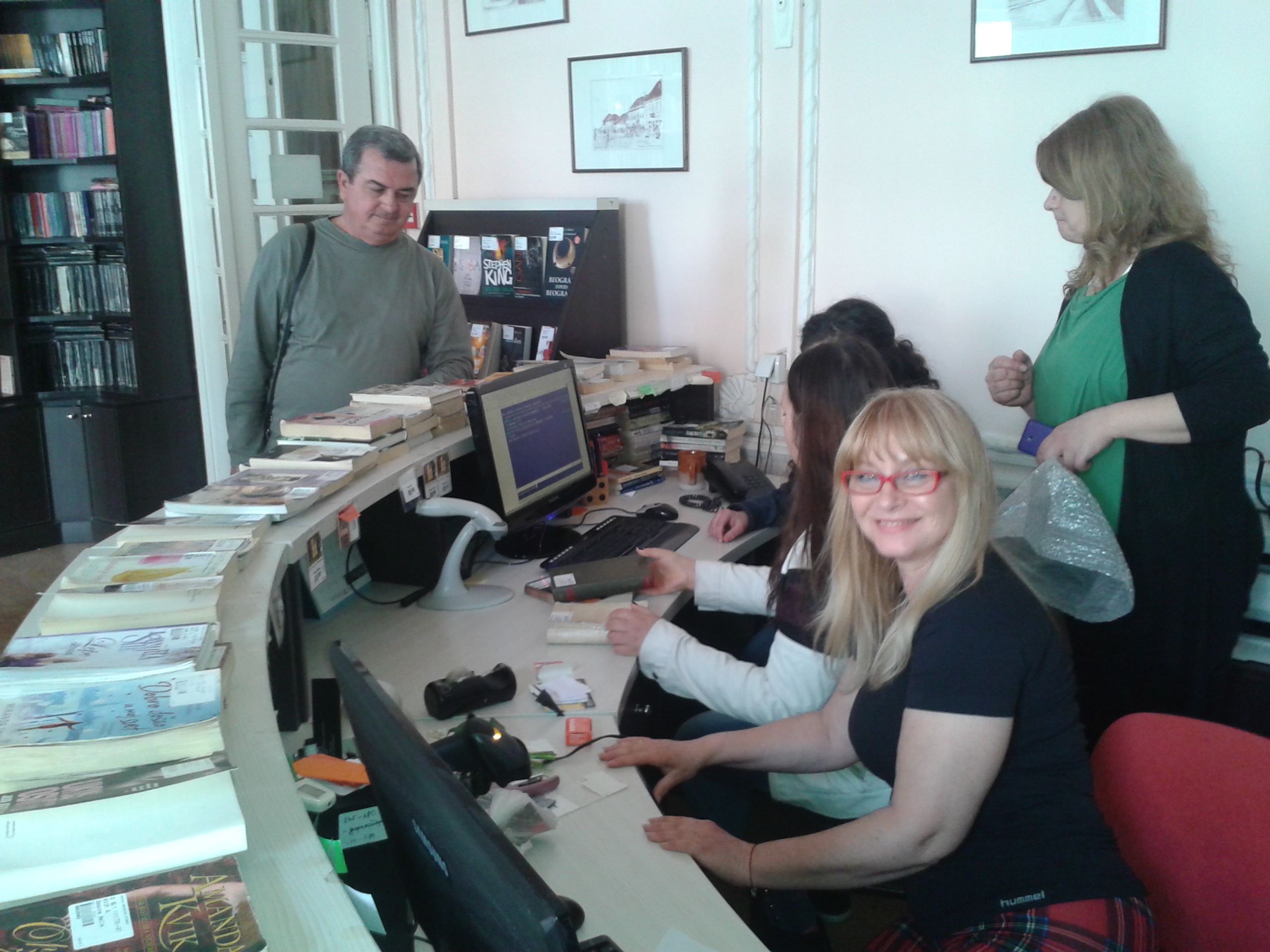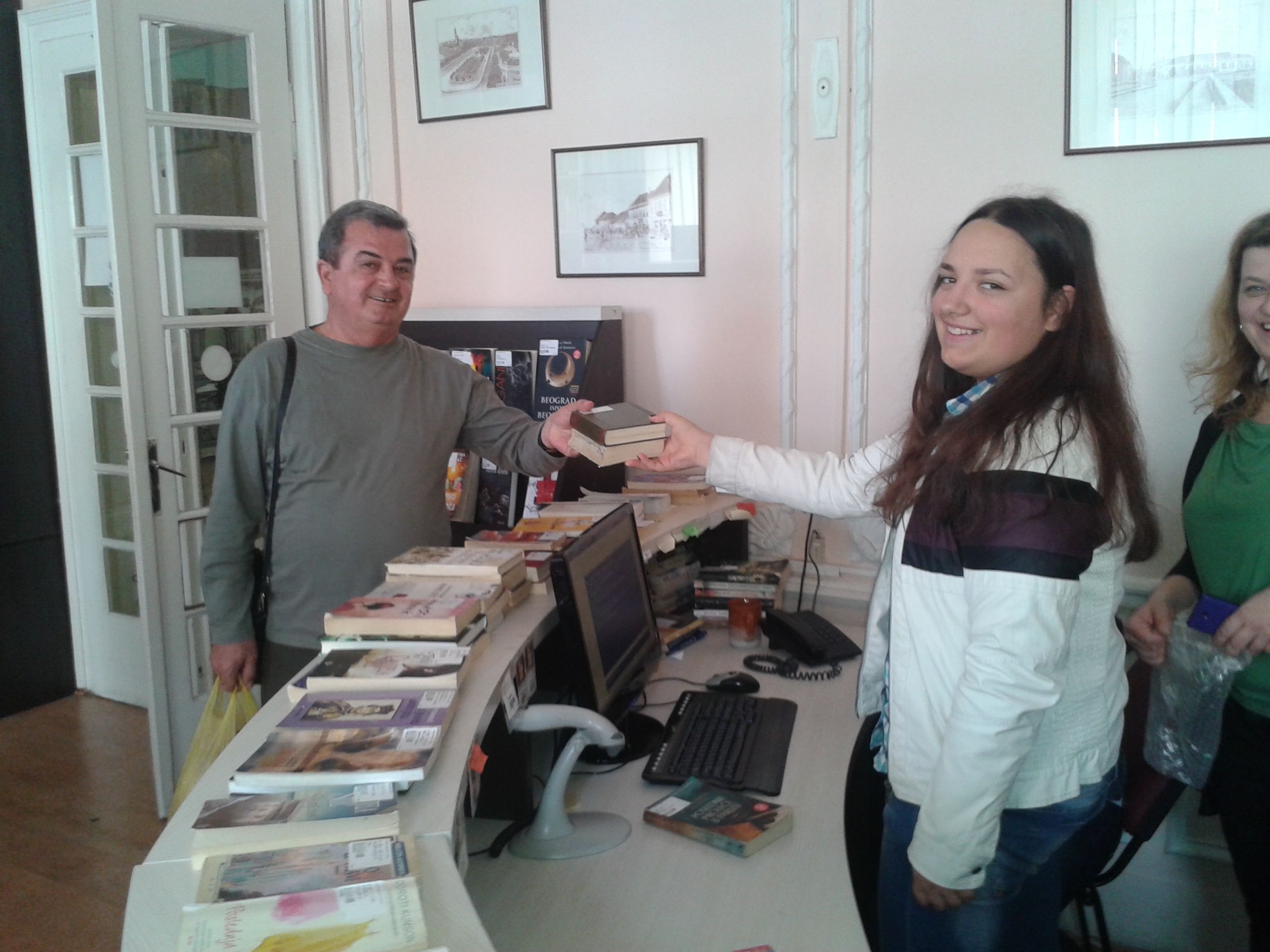 U sredu, 13. aprila učenice drugog razreda Gimnazije „Svetozar Marković“, Jelena Vasić i Milica Milošević svoj dan su posvetile volontiranju u biblioteci. Na početku su se susrele sa direktorkom Vesnom Crnković koja ih je upoznala sa poslom direktora biblioteke, ali i sa mnogobrojnim aktivnostima i uspesima naše ustanove. Pošto su uz stručna objašnjenja zaposlenih obišle sva odeljenja, Jelena i Milica su prionule na posao na Dečjem odeljenju i Odeljenju za odrasle korisnike. Uz pomoć koleginica Jasmine Živanović, Biljane Jovović i Danice Stojković-Vuković one su zaduživale i razduživale korisnike, sređivale fond biblioteke, a najviše truda su uložile u rashodovanje knjiga. Kažu da im se, osim odeljenja na kojima se radi sa korisnicima, naročito dopalo Zavičajno odeljenje. Iako su u biblioteci provele pravi radni dan koji je trajao osam sati, nestrpljive su da ponovo dođu i još jednom osete lepotu bibliotekarskog poziva.