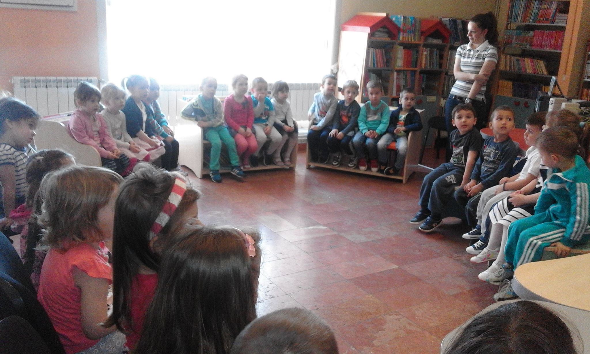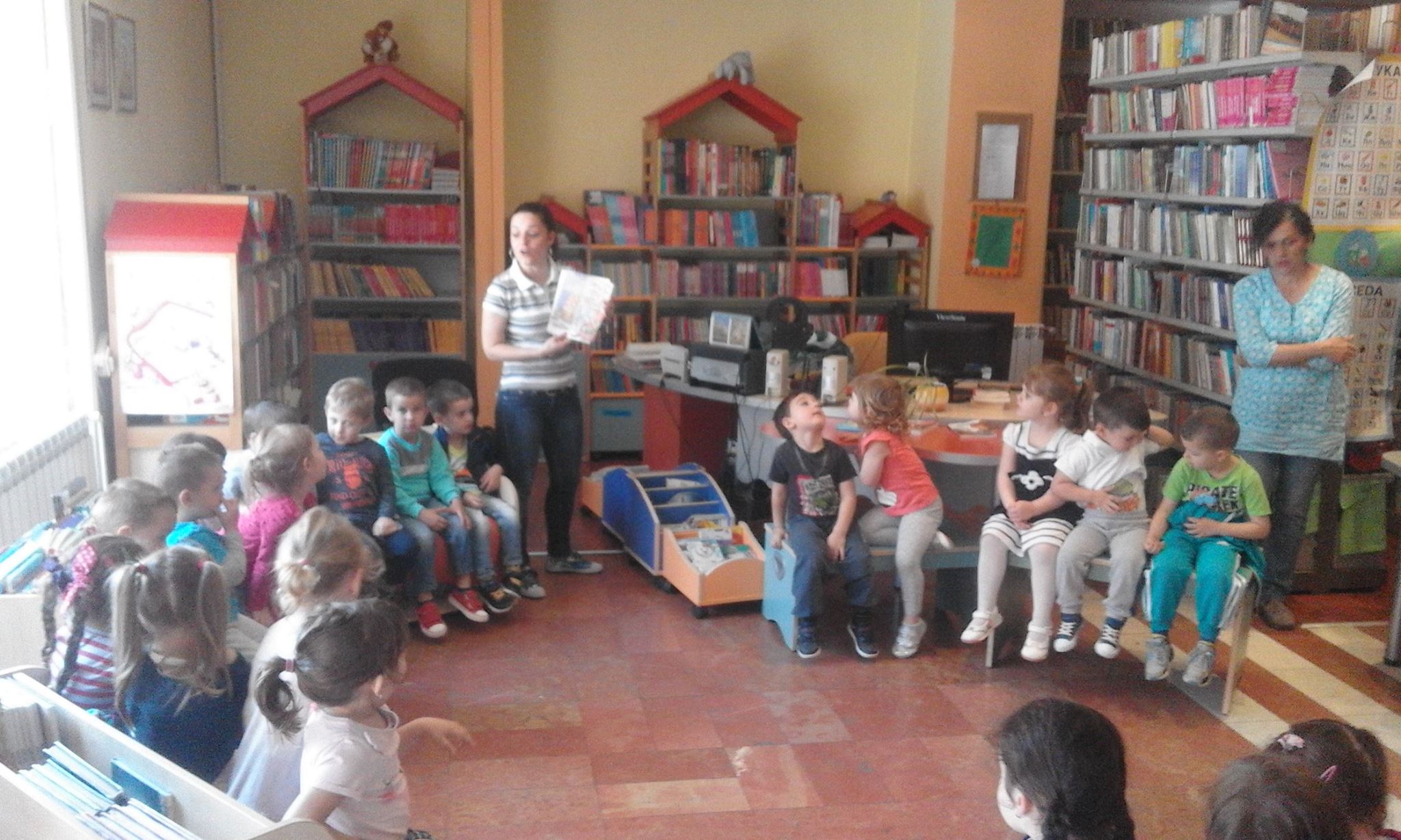 Grupa dece iz predškolske ustanove „Pionir“, mlađa vaspitna grupa, je posetila Dečje odeljenje Narodne biblioteke. Tu su se neki po prvi put upoznali sa Bibliotekom i knjigama koje se tu mogu naći. Bibliotekar Dečjeg odeljenja Jasmina Živanović održala je javni čas i upoznala decu sa radom Biblioteke i mogućnostima koje pruža svojim članovima.