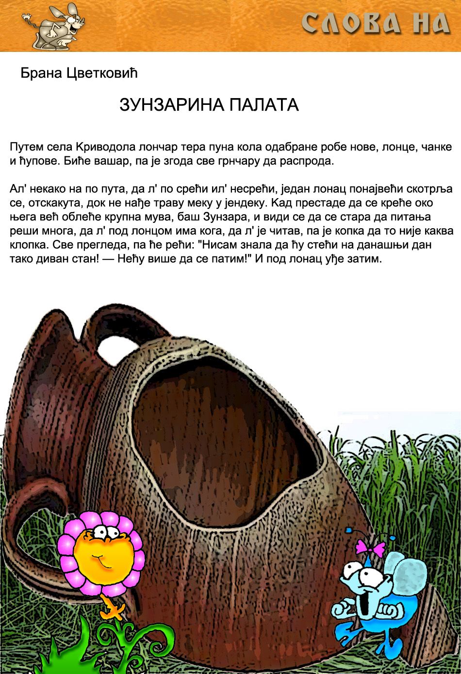 Već četiri godine posetioci sajta Narodne biblioteke u Jagodini besplatno mogu da uživaju u redovno objavljivanom i veoma kvalitetnom književnom elektronskom časopisu za decu “Slova na struju”. Ovih dana na sajtu biblioteke objavljen je novi, 17. broj koji, uz logističku podršku ekipe iz biblioteke, uređuje Peđa Trajković, pesnik, dramski pisac, ilustrator za decu i osnivač Prvog srpskog dečjeg kabarea ŠARENA RADIONICA. I ovoga puta, 256 stranica poezije i proze, ali i zanimljivih ilustracija i korisnih tekstova sigurno će privući pažnju mališana, a format onlajn časopisa će otvoriti vrata književnosti i klincima koji više vremena provode za kompjuterom, nego sa knjigom u rukama. Kontinuitet kvaliteta garantuju dobro poznate rubrike, ovoga puta sa novim temama, piscima i književnim tekstovima. Rubrika Tema šema dilema na više od 40 strana poezije obrađuje aktuelnu tematiku prejedanja, odnosno, kako urednik srpski kaže “ždranja” u dečijoj i inoj književnosti. U ovoj rubrici možete pročitati pesme Tode Nikoletića, Đorđa Balaševića, Peđe Trajkovića i mnogih drugih domaćih i stranih pesnika. Prijatno! Bliski susret pisane vrste rezervisan je za stvaralaštvo Đanija Rodarija, autora “Gramatike mašte” i jednog od najvećih italijanskih pisaca za decu. Stara slova vrede kao nova donose nam prozu Brane Cvetkovića, uvrnutu poeziju Ogdena Neša i uz rukovet starih dečijih evergrinova antologijsku pesmu A. Vuča “Moj otac tramvaj vozi”. U Spomenaru se prisećamo Vuka Stefanovića Karadžića, ali na nov i originalan način. Slova do snova prate aktuelnu domaću produkciju, a vredi istaći pripovetke Gordane Maletić i Slađane Ristić „Adios, gringo“ i “Tajne vrta gospođe Klare”. Knjiga na dar je ovoga puta “Šerpu svrbi testo” Gorana Novakova, dok S knjigom oko sveta stižemo do Italije, gde upoznajemo književnost, ali i mentalitet ljudi nekadašnje imperije. Grrrramatika još jednom rešava vaše jezičke dileme, a ovoga puta poziva, naravno, na štednju. Čarobna reč broja je …Put, a kao i uvek, saznajte svoju budućnost i slatko se nasmejte za kraj uz Horoskop Igora Kolarova. NOVI, 17. BROJ ELEKTRONSKOG ČASOPISA ZA DECU „SLOVA NA STRUJU“ DOSTUPAN JE BESPLATNO NA SAJTU NARODNE BIBLIOTEKE U JAGODINI. DOBRO DOŠLI!