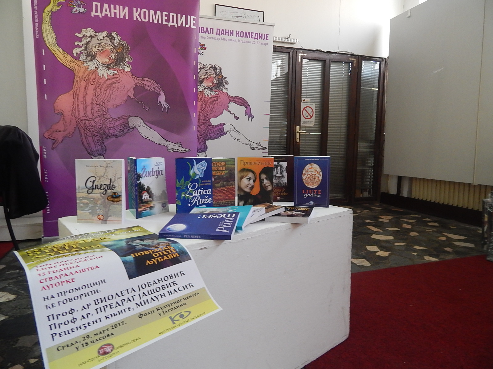 Na izuzetno dobro posećenoj i medijski propraćenoj promociji o životu i delu autorke govorili su prof. dr Violeta Jovanović, dekan Fakulteta pedagoških nauka, prof. dr Predrag Jašović, kao i Milun Vasić, recenzent i urednik većine knjiga jagodinske autorke. Odlomke iz romana „Povratak otete ljubavi“ čitala je prof. dr Maja Dimitrijević, a program je umešno kao i uvek vodila Jasna Milošević iz Odeljenja za kulturno-obrazovne programe i podsticanje čitanja Narodne biblioteke u Jagodini.
