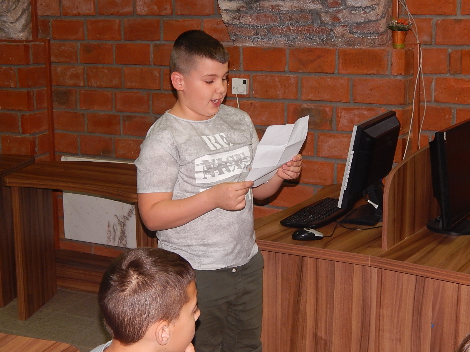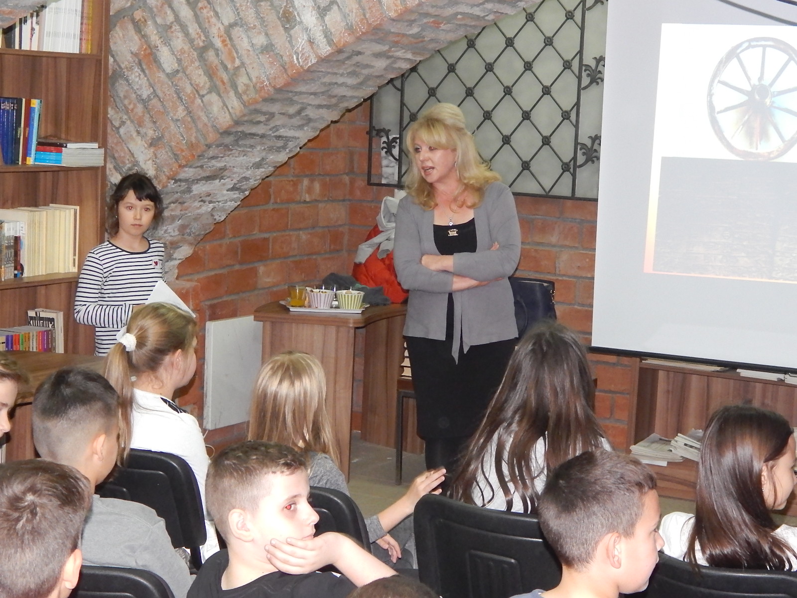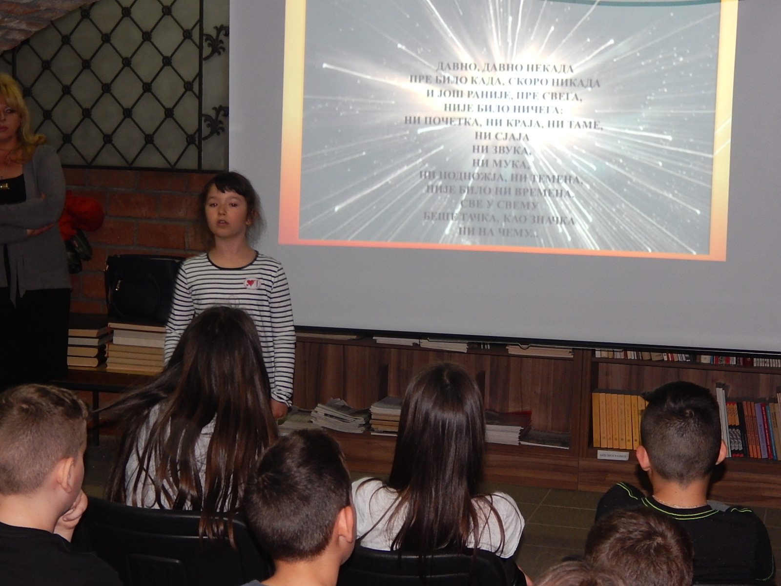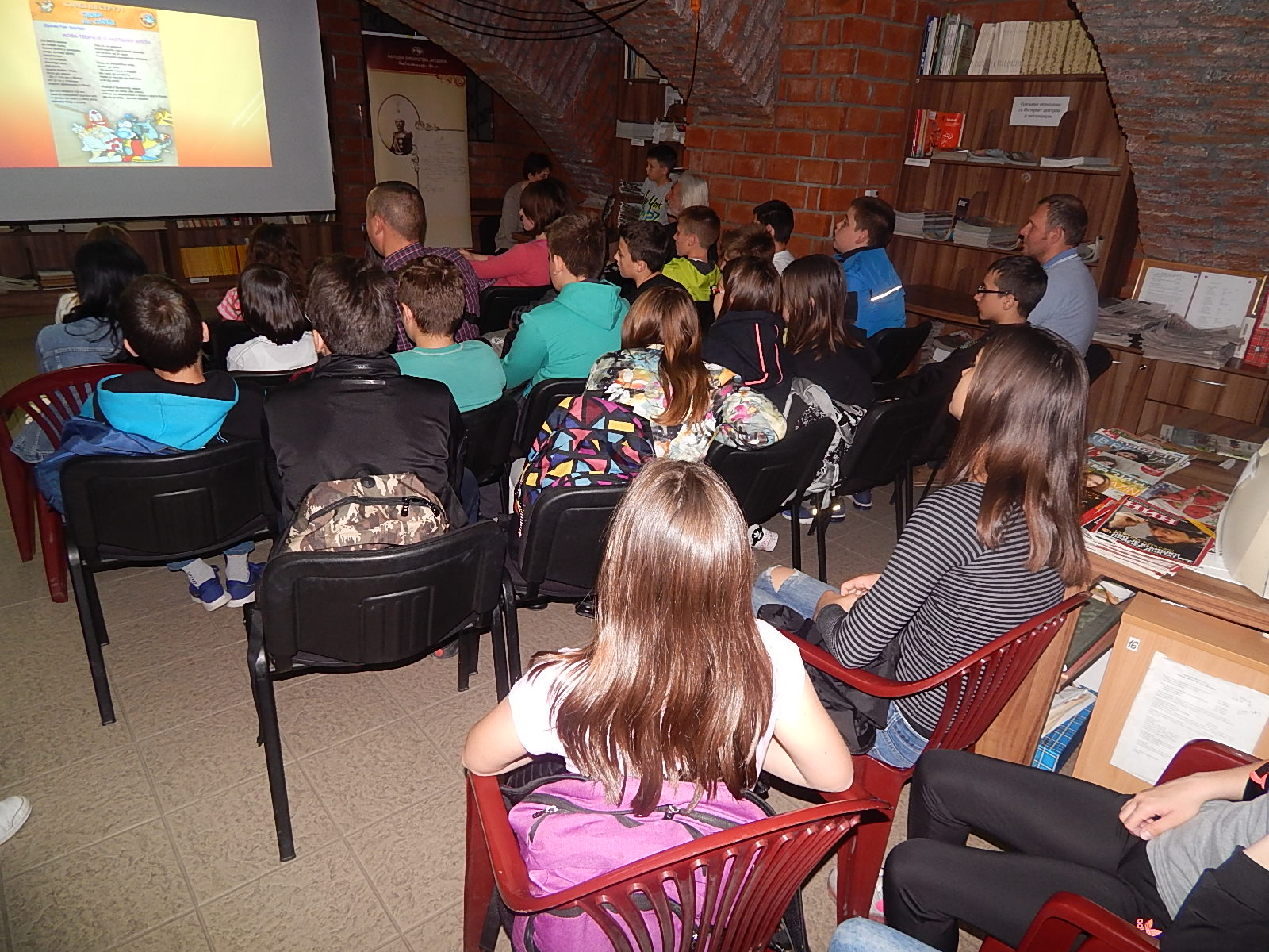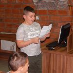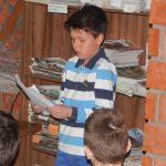 Gosti su nam bili svi četvrtaci iz OŠ “ 17. oktobar” i njihovi nešto stariji drugovi, učenici šestog razreda OŠ “ Milan Mijalković”. Zajedno smo pričali priču o Slovima listajući ih od rubrike do rubrike i uživali u recitovanju i čitanju njihovih odabranih stranica koje su nam priredili naši drugari: Aleksija, Vuk, Petar i Mateja.