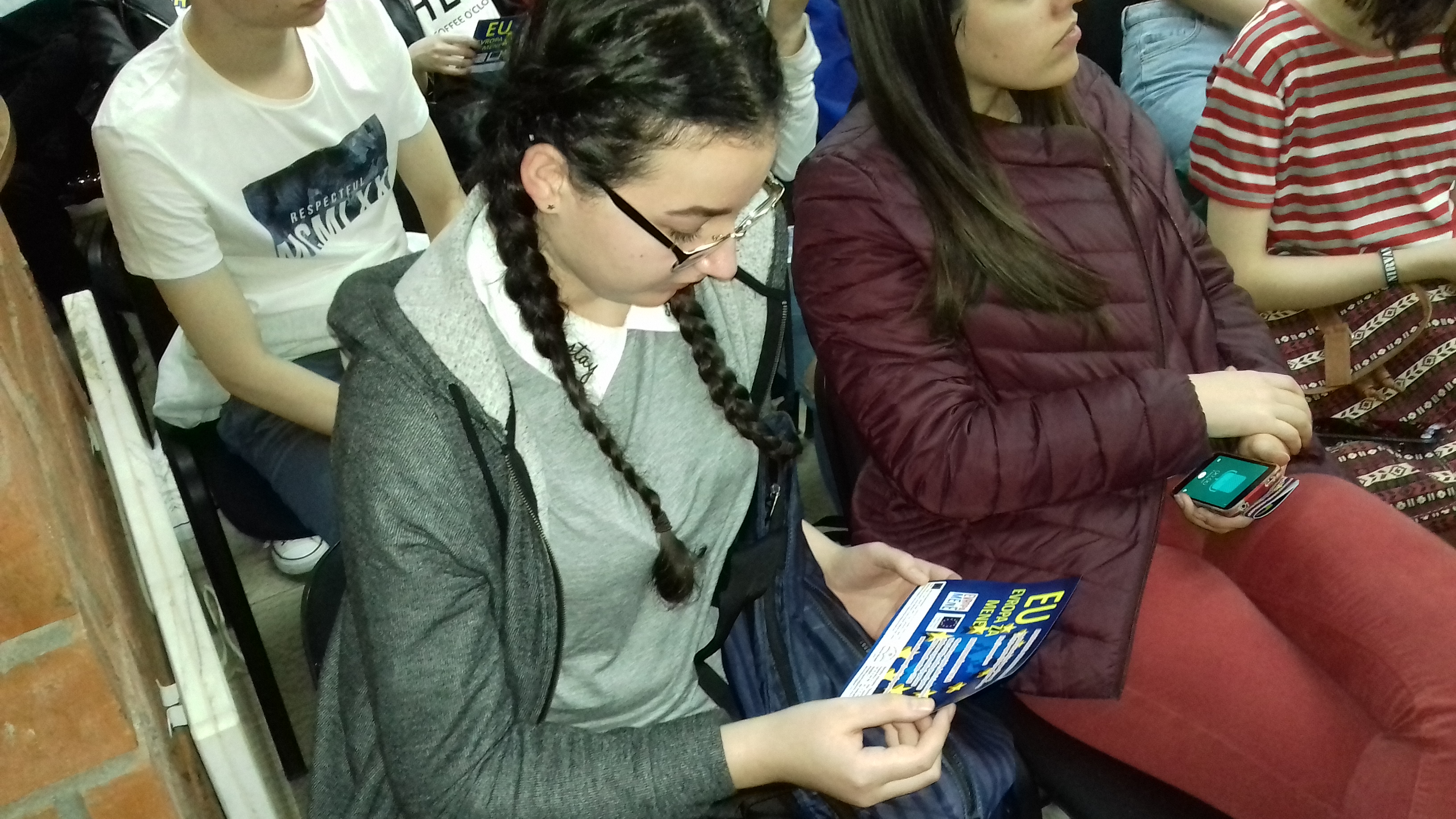 Đorđo Cvijović, Nina Stojanović, Zorana Milovanović, aktivisti Foruma mladih Evropskog pokreta u Srbiji, kao i Ivana Markulić, predsednica Foruma mladih Evropskog pokreta u Srbiji govorili su o značaju pristupanja Srbije Evropskoj uniji, ali i o konkretnim koristima koju mladi Jagodinci mogu imati od samog procesa pristupanja. Gosti iz Beograda, po godinama bliski prisutnim srednjoškolcima, na zanimljiv i mladima blizak način odgovarali su na pitanja koja su interesovala prisutne: Zašto je važno da Srbija bude članica EU? Zašto je to bitno za građane Srbije i koje su to mogućnosti koje EU pruža mladima? Kakvi su to programi mobilnosti u vidu kratkoročnih i dugoročnih razmena / treninga / volontiranja i kako studirati na evropskim univerzitetima?