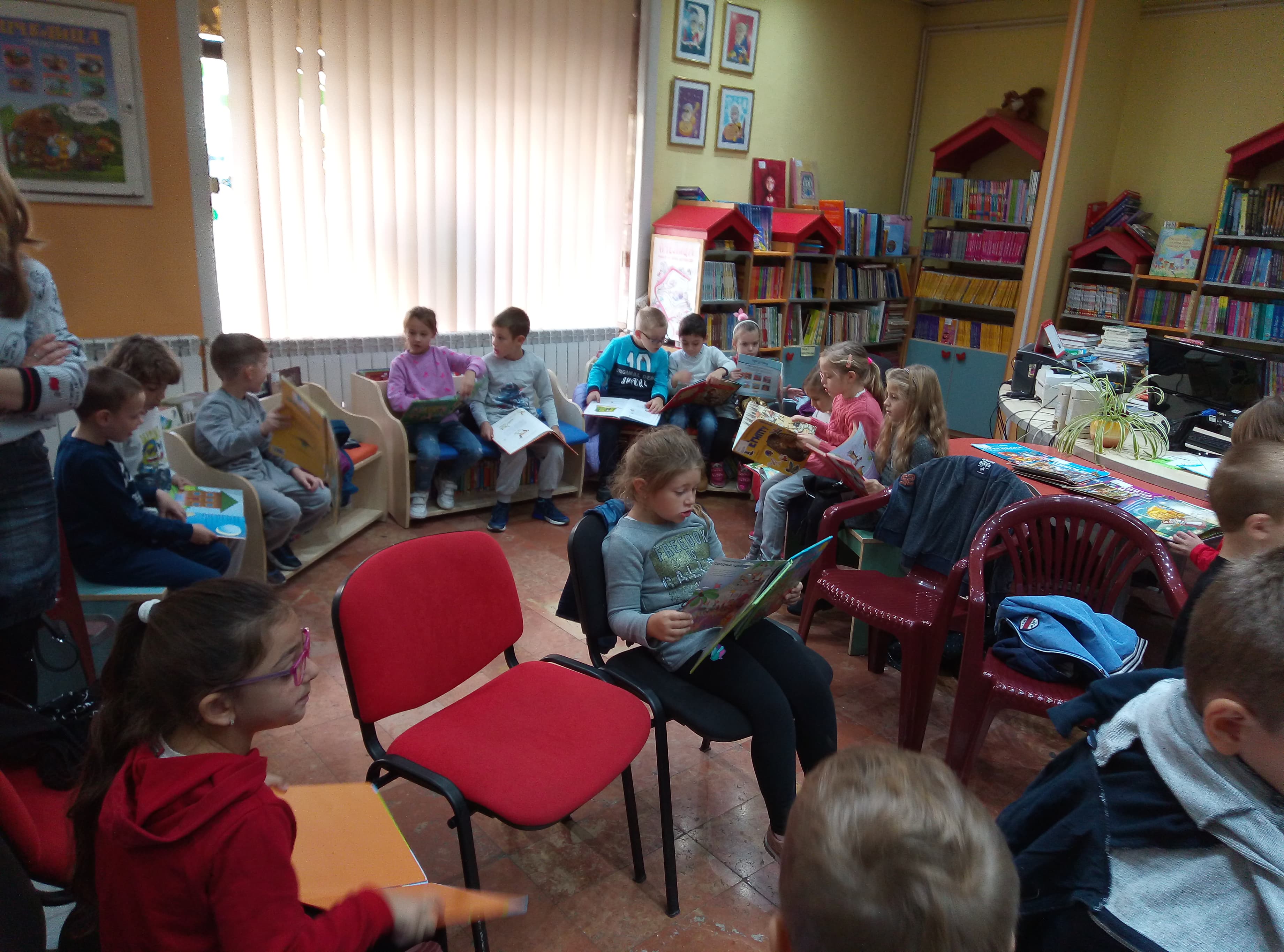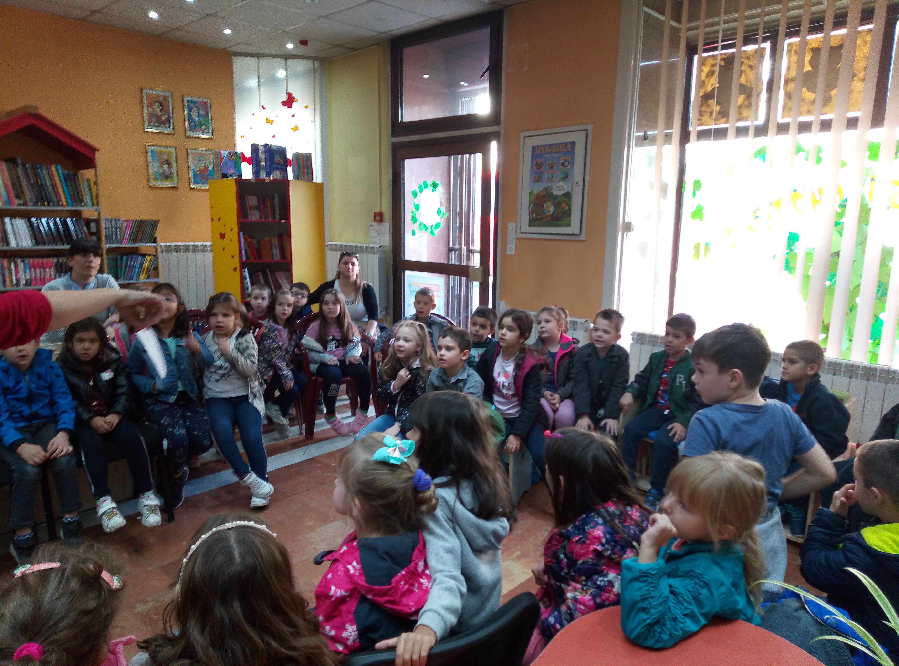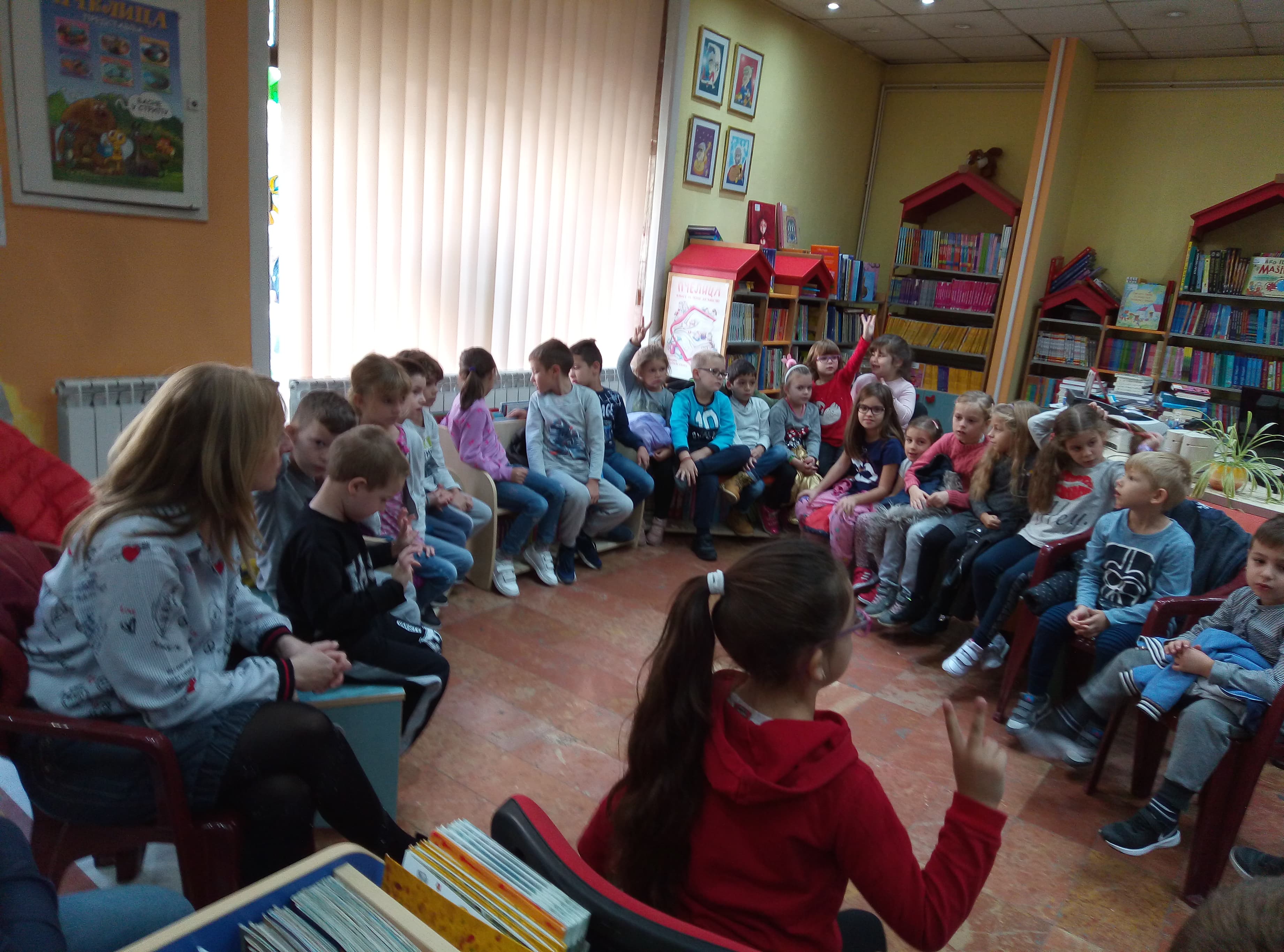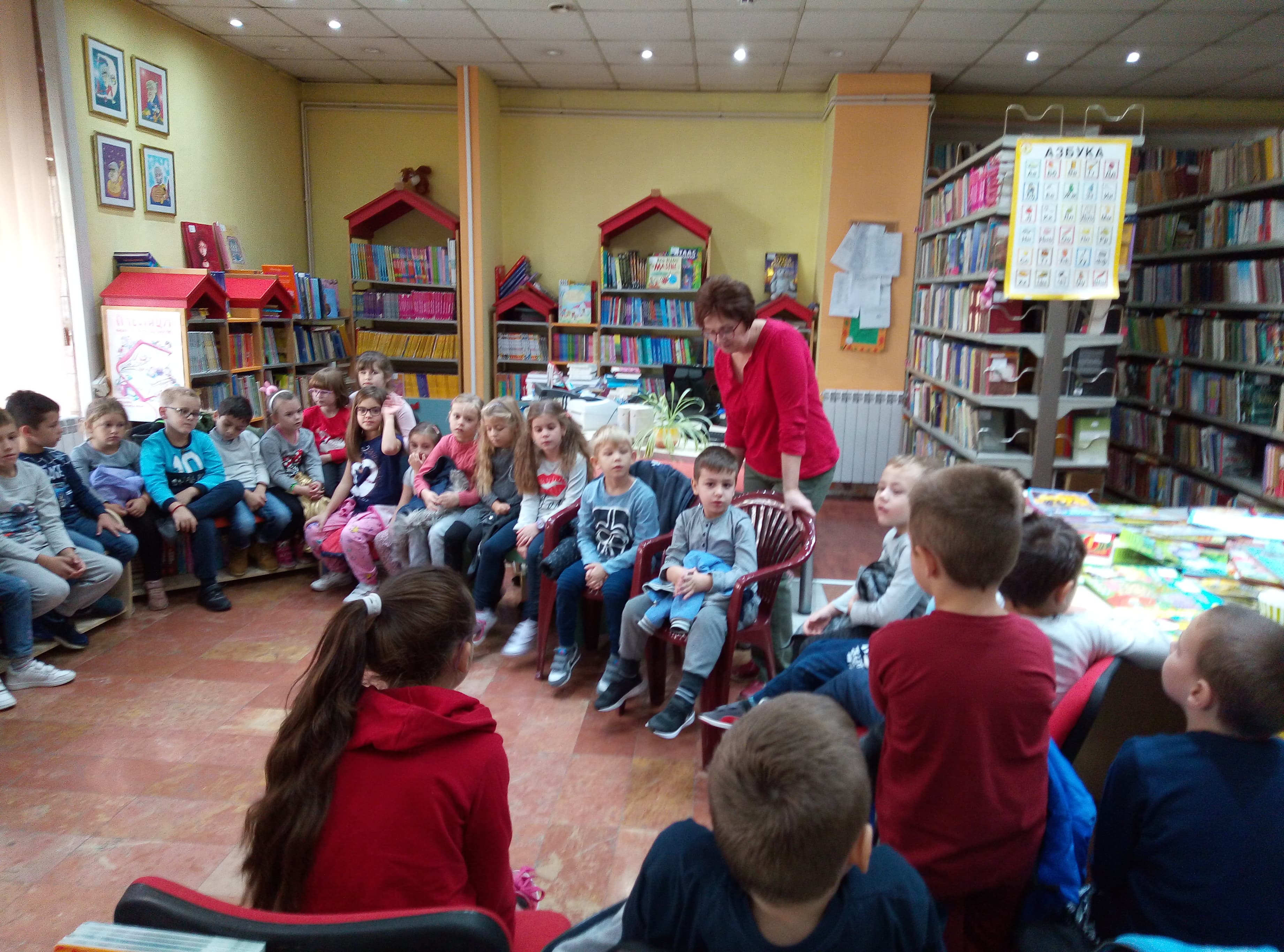 Oni najmlađi, predškolci iz Predškolske ustanove “ Pionir”, dolazili su u svoju prvu organizovanu posetu biblioteci i u neformalnom druženju saznali njenu namenu i mogućnosti koje im pruža, dok su stariji imali ozbiljniji zadatak. Podsetili smo se prava iz Konvencije i simbolično, izradom narukvice od sedam različitih boja pokušali smo da, sjedinjujući kontrasti i razlike, dobijemo šarenolikost i lepotu preplitanja različitosti.