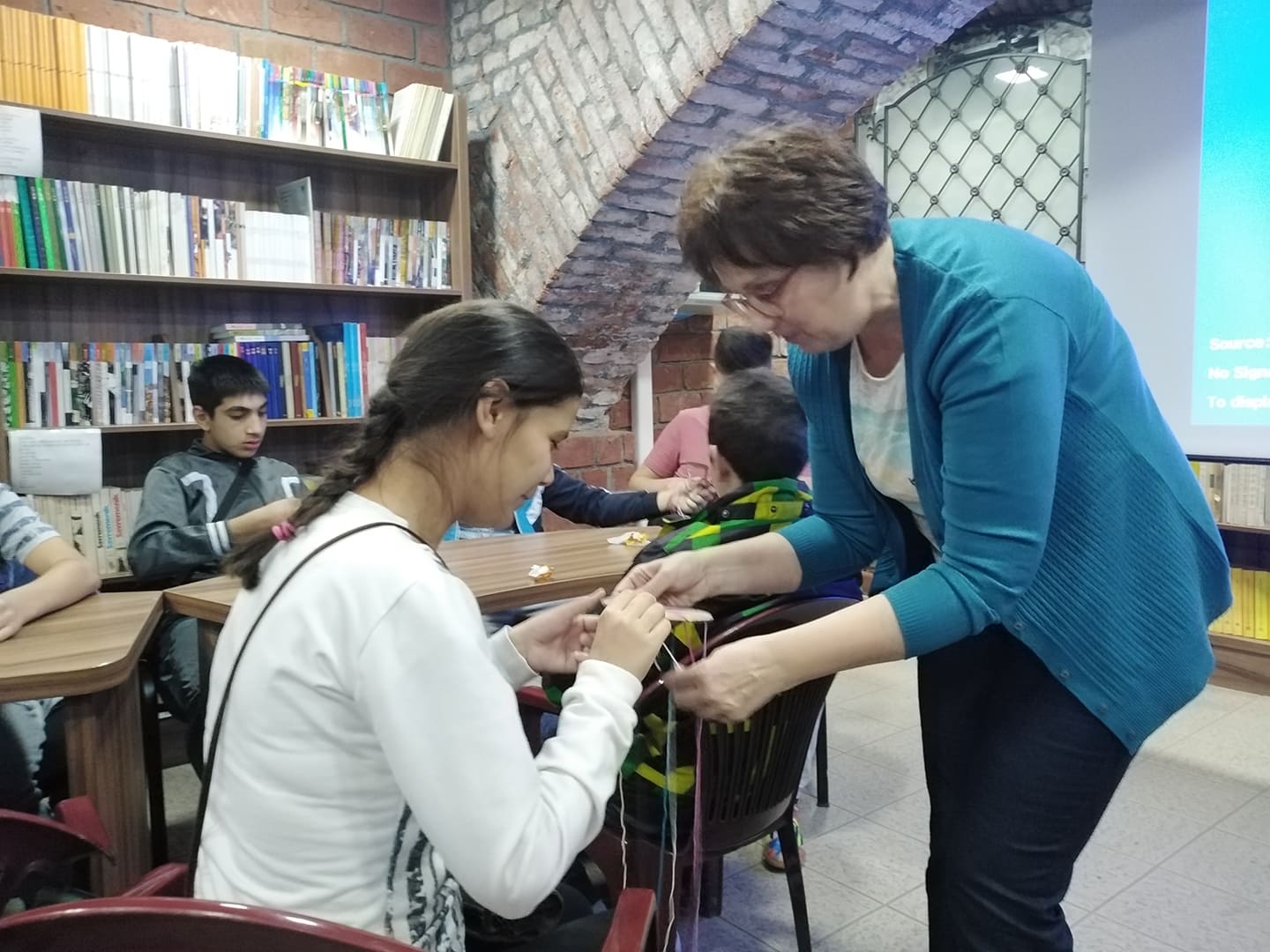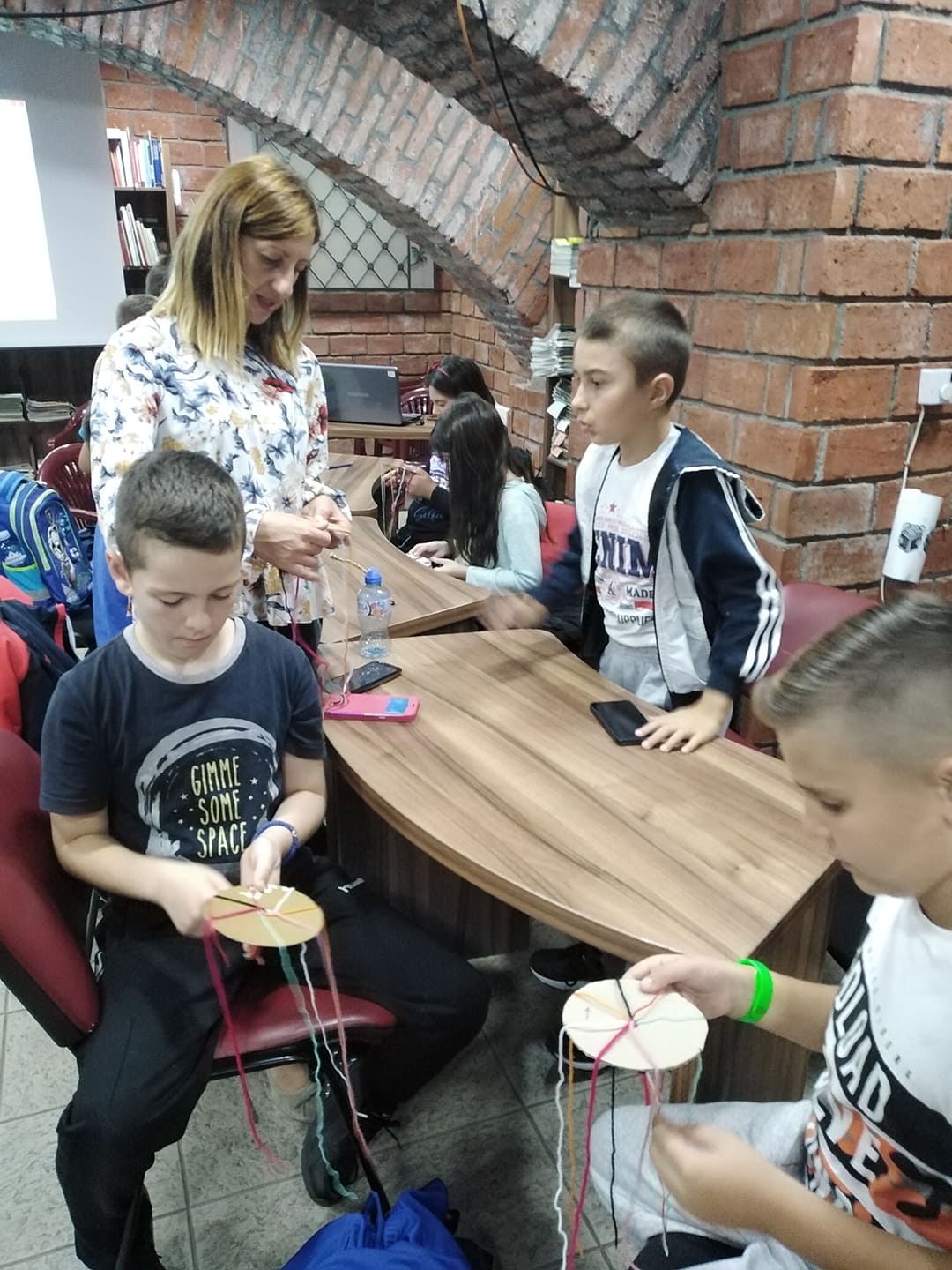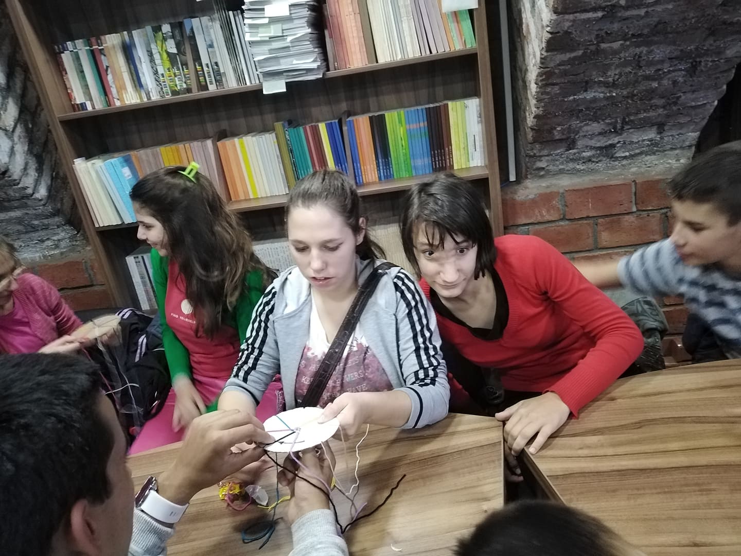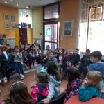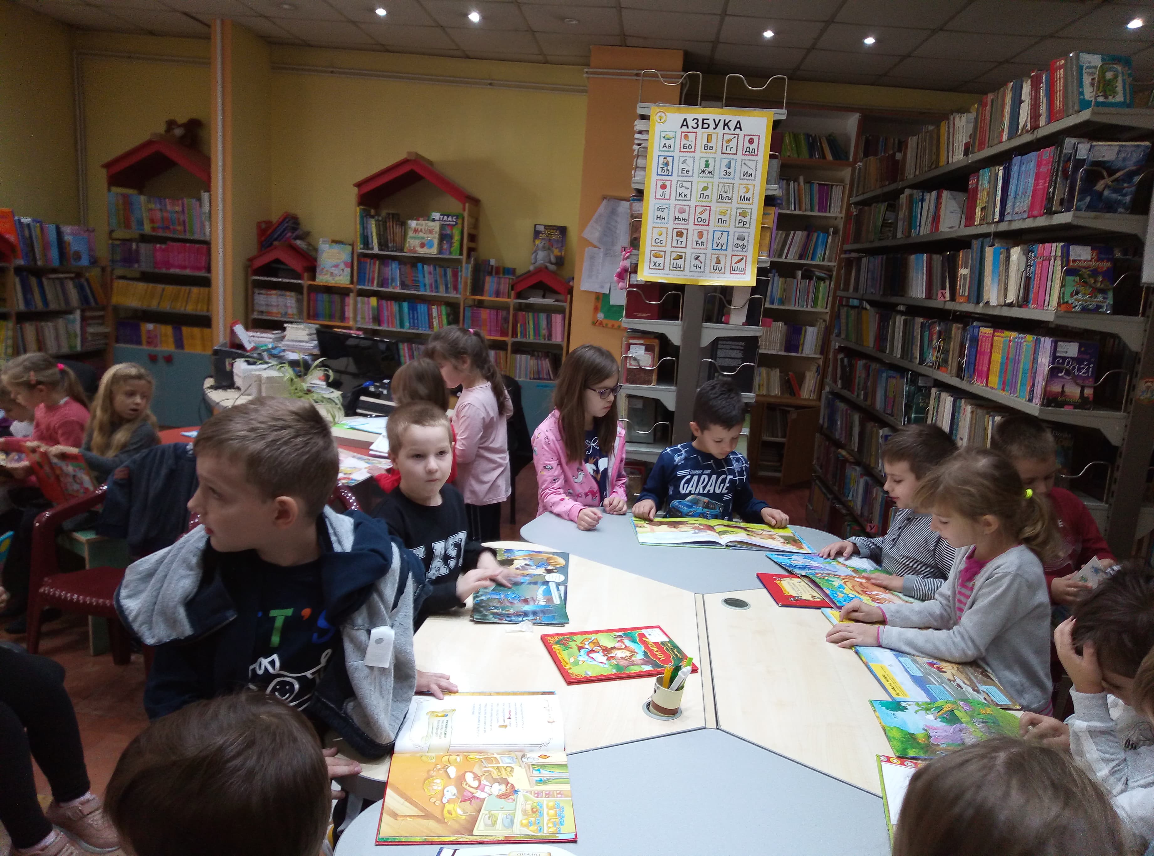 Oni najmlađi, predškolci iz Predškolske ustanove “ Pionir”, dolazili su u svoju prvu organizovanu posetu biblioteci i u neformalnom druženju saznali njenu namenu i mogućnosti koje im pruža, dok su stariji imali ozbiljniji zadatak. Podsetili smo se prava iz Konvencije i simbolično, izradom narukvice od sedam različitih boja pokušali smo da, sjedinjujući kontrasti i razlike, dobijemo šarenolikost i lepotu preplitanja različitosti.