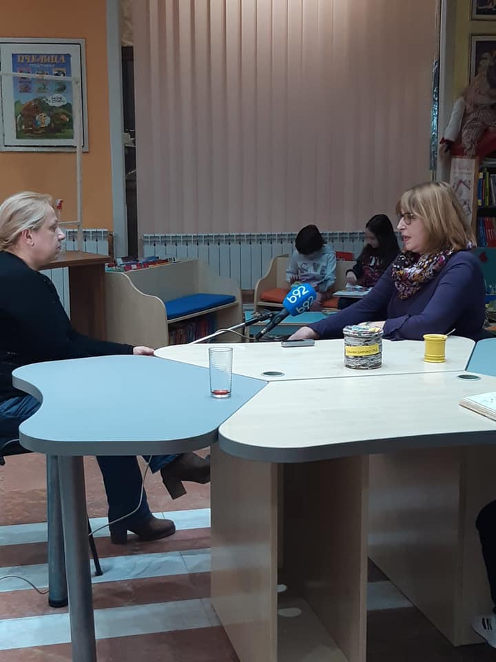 Dragi prijatelji iz Kopernikus TV studija u Jagodini, novinarka Tanja Mitrović i snimatelj Saša Jović, su u četvrtak proveli lepo popodne u biblioteci. Družeći se sa koleginicom Jasminom Živanović i našim najvernijim i najmlađim čitaocima Petrom Milosavljevićem, Bogdanom Miletićem, Sergejom i Vojinom Ivanovićem, Nikolinom Pešić i Minom Jović saznali su koja su čitalačka interesovanja najmlađe jagodinske publike i uverili se da ljubav prema knjizi u Jagodini ima, osim dugačke i bogate tradicije i svetlu i osiguranu budućnost.