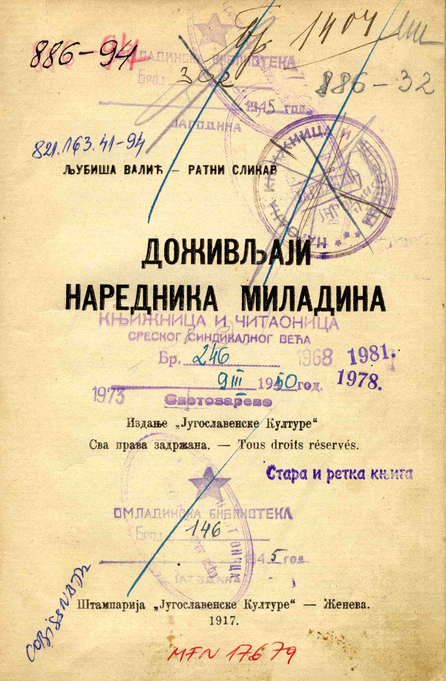 Naslov: Doživljaji narednika Miladina / Ljubiša Valić