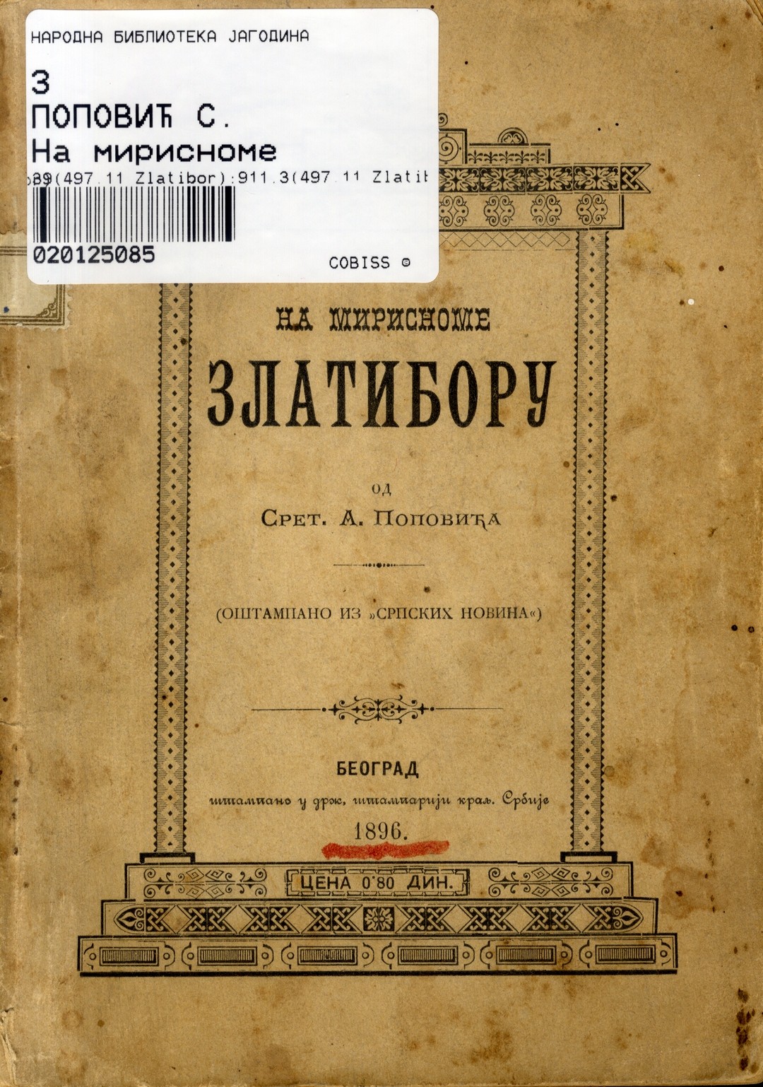 Naslov: Na mirisnome Zlatiboru / od Sret.[Sretena] A. Popovića