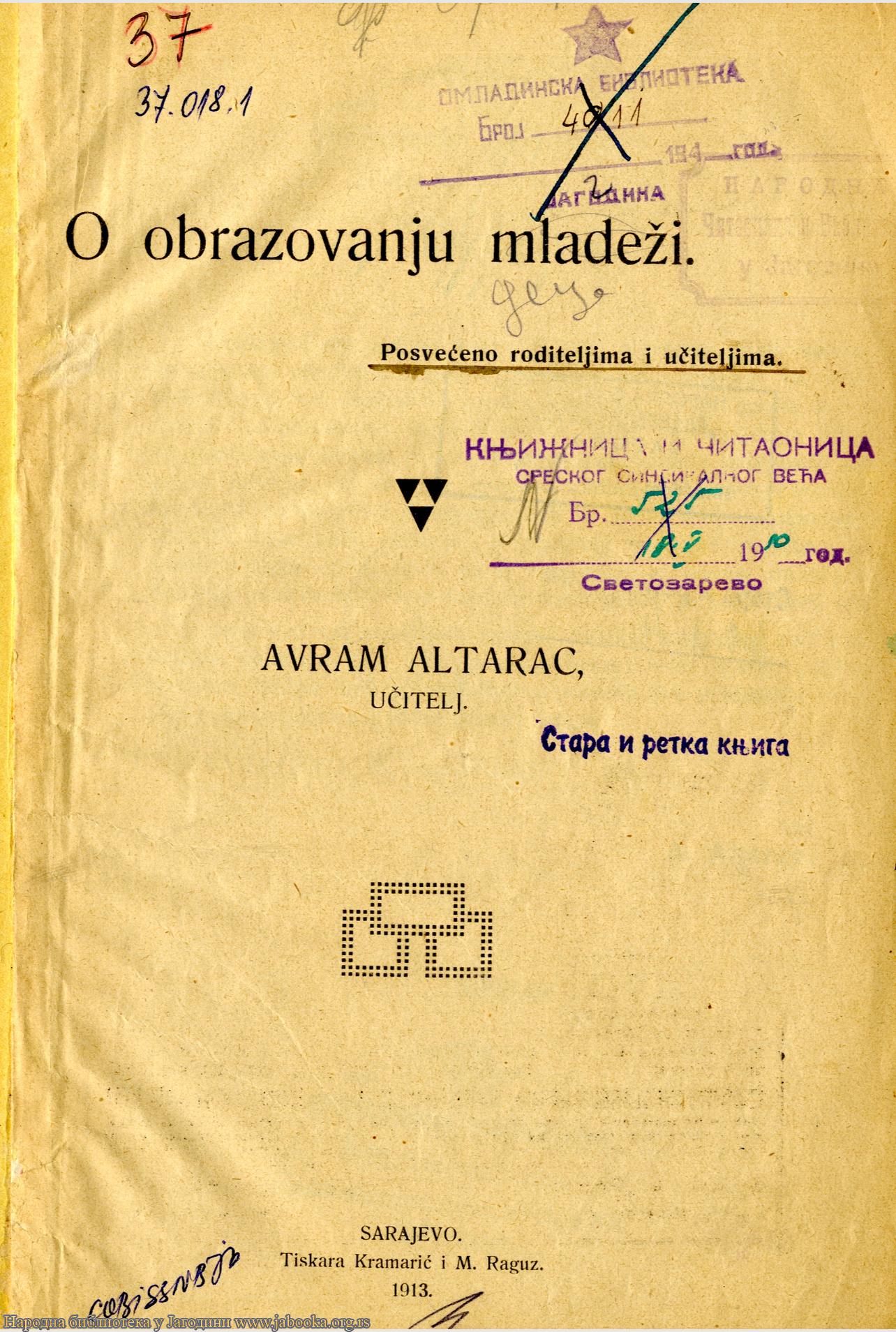 Naslov: O obrazovanju mladeži : posvećeno roditeljima i učiteljima