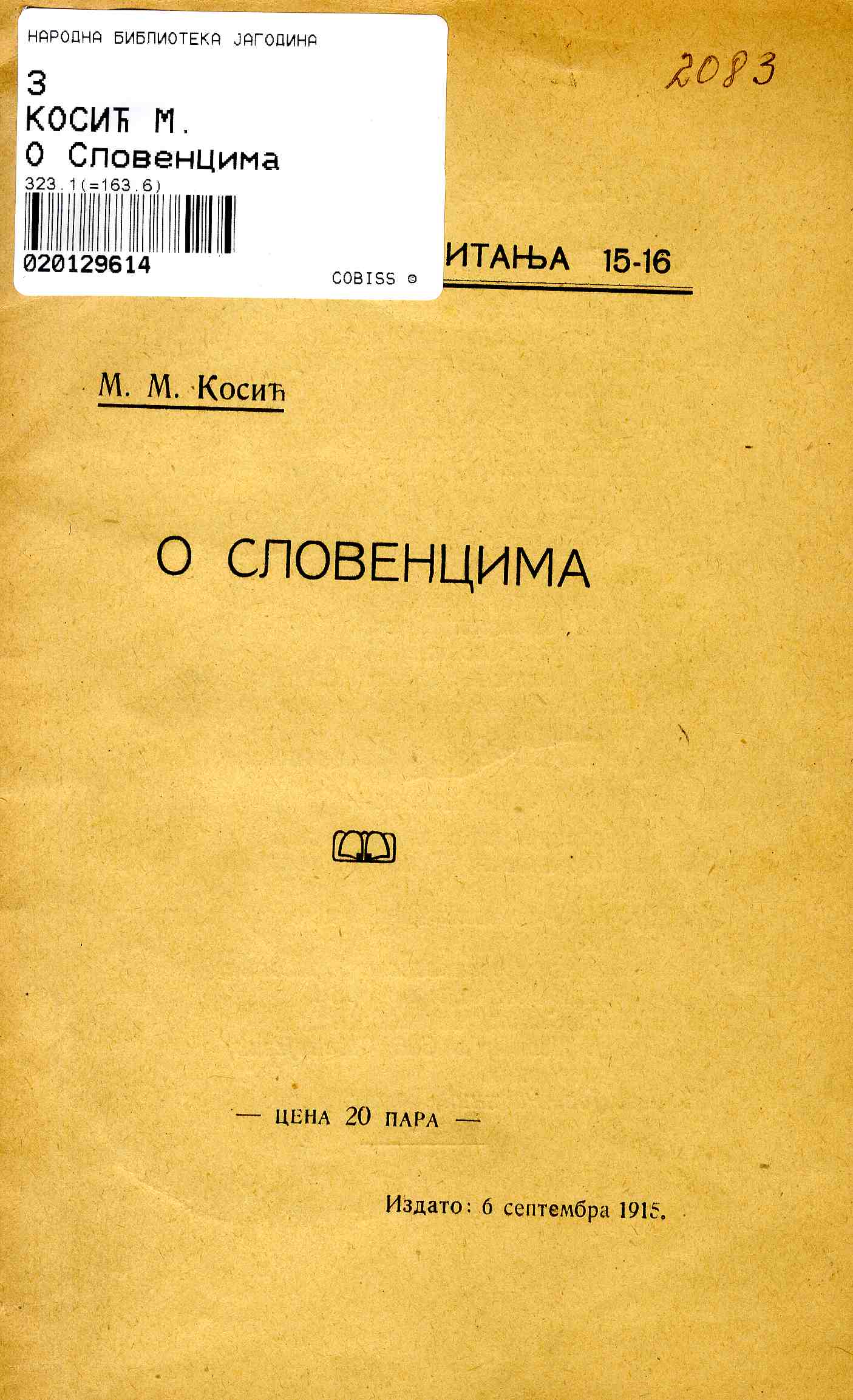 Naslov: O Slovencima / M.[Mirko] M. Kosić