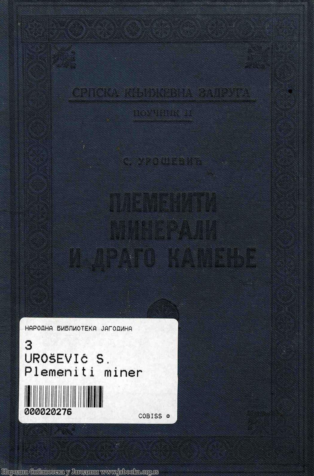 Naslov: Plemeniti minerali i drago kamenje / S.[Sava] Urošević