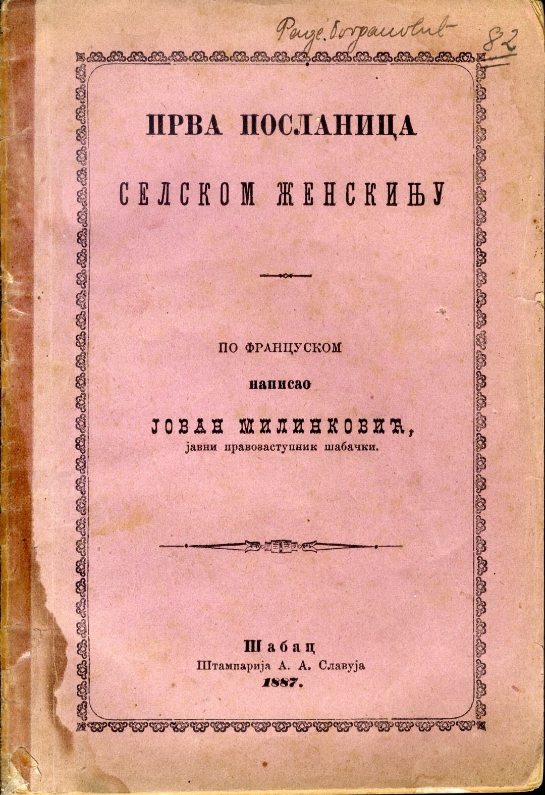 Naslov: Prva poslanica selskom ženskinju / po francuskom napisao Jovan Milinković