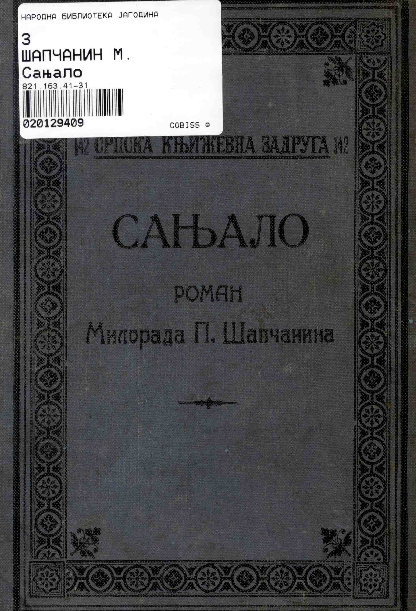 Naslov: Sanjalo : roman Milorada P. Šapčanina / u redakciji i s predgovorom Jovana Skerlića