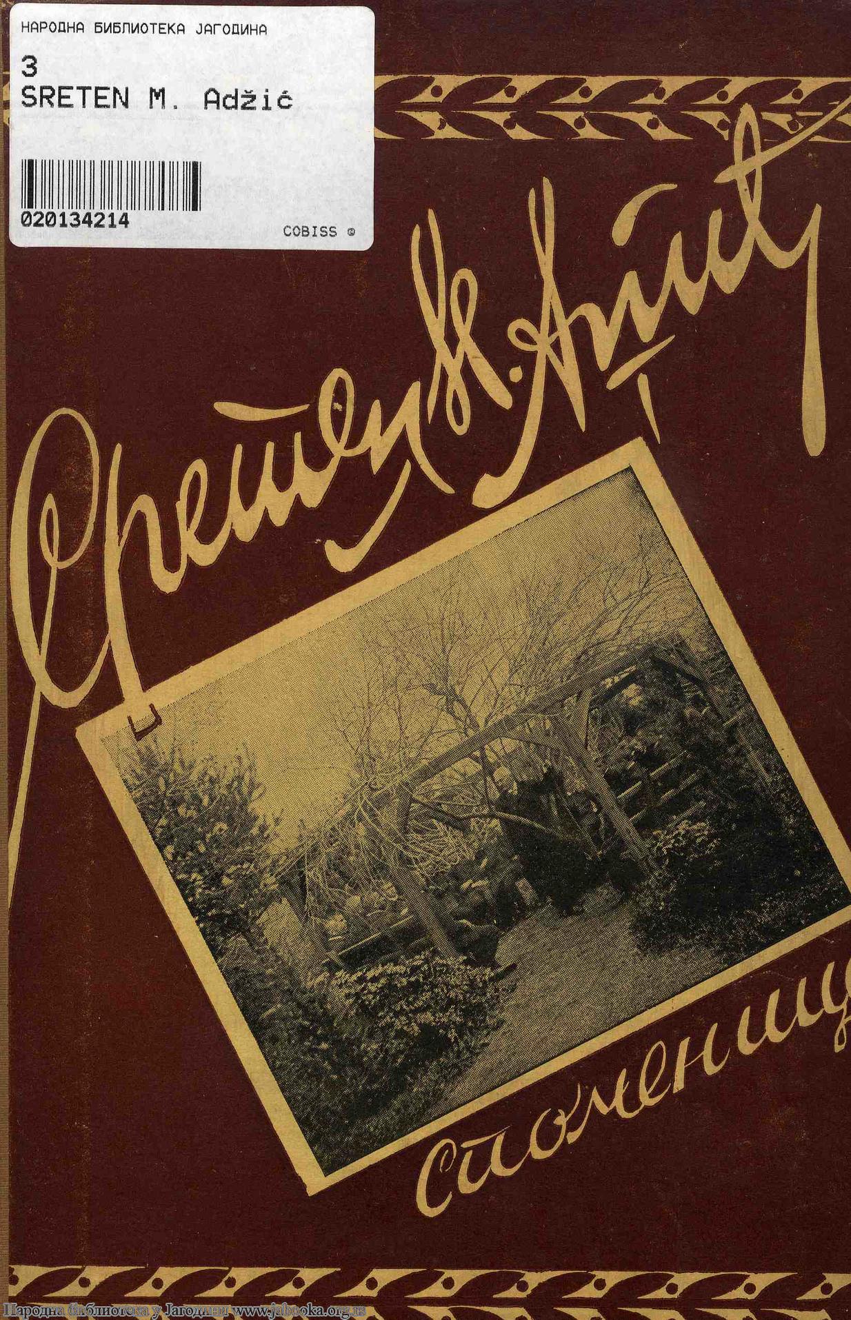 Naslov: SRETEN M. Adžić : spomenica u slavu učitelja, profesora, direktora, pedagoga, naučnika i narodnog prosvetitelja : od zahvalnih mu učenika i poštovalaca ; [urednik Milovan Ristić]