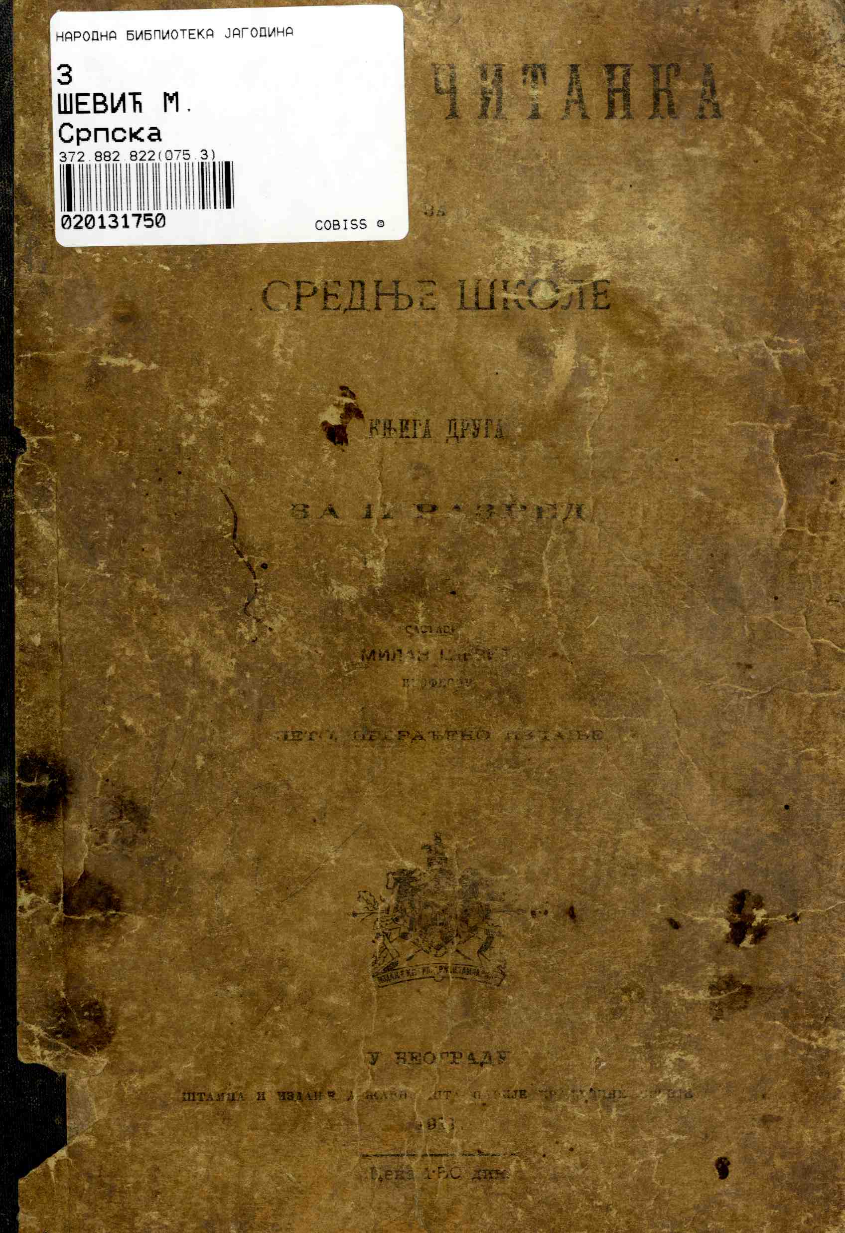 Naslov: Srpska čitanka : za srednje škole. Knj. 2, Za II razred / sastavio Milan Šević