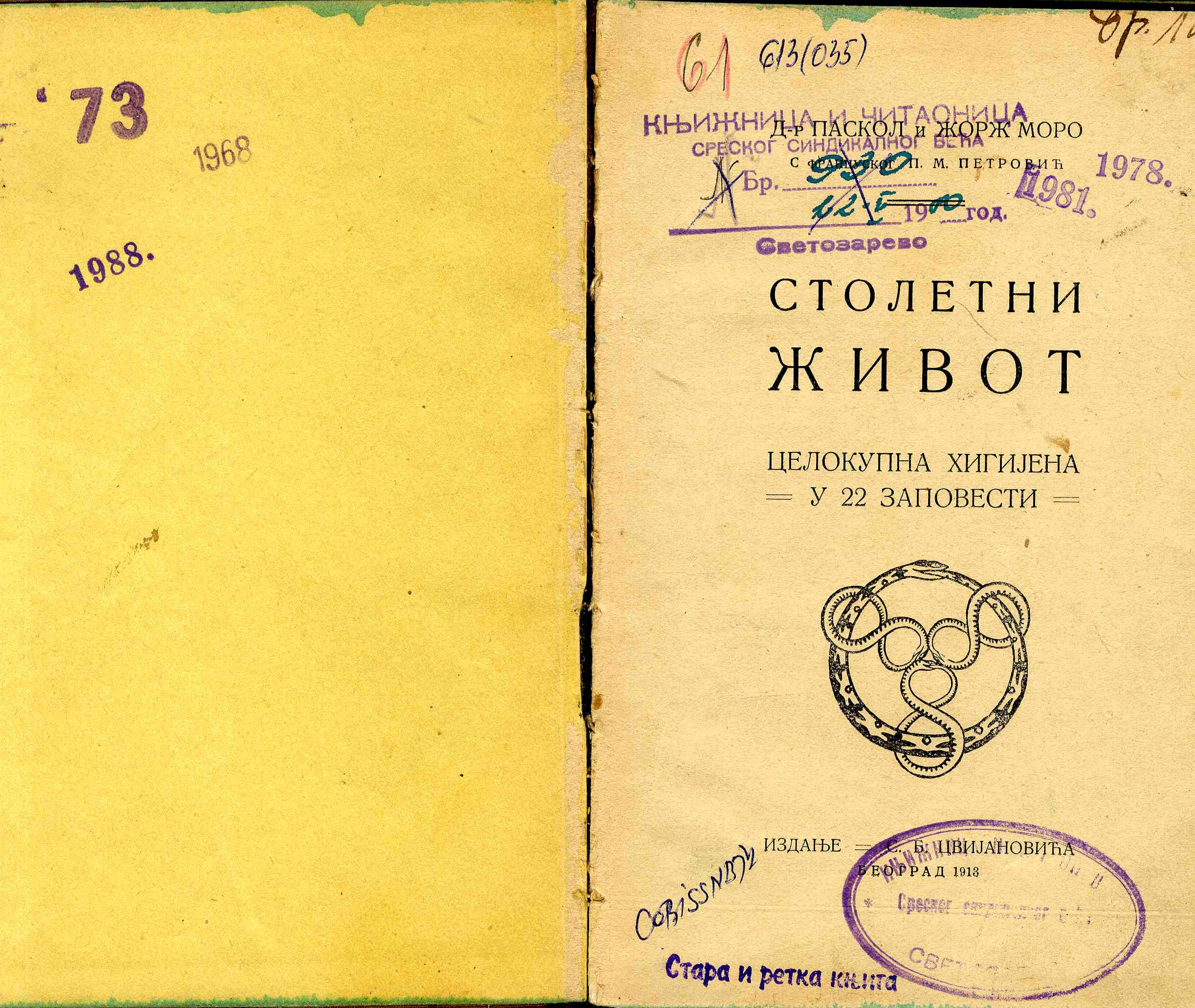 Naslov: Stoletni život : celokupna higijena / Paskol i Žorž Moro ; s francuskog P. M. Petrović